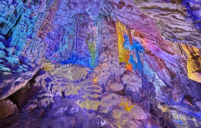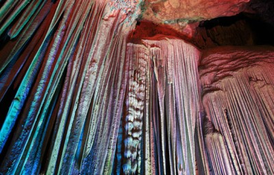 100만 년의 역사를 가진 종유석과 석순에 화려한 조명이 어우러진 석회동굴