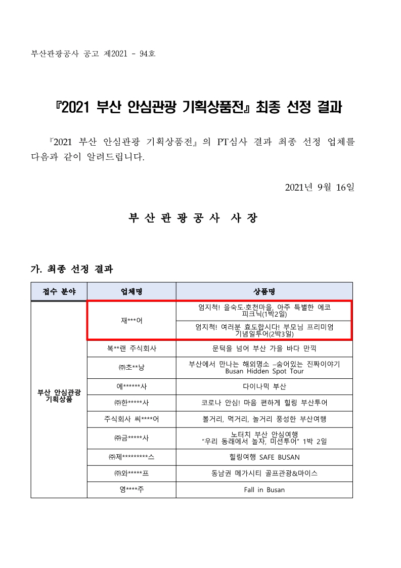 부산시와 부산관광공사가 주최한 여행상품 공모전에